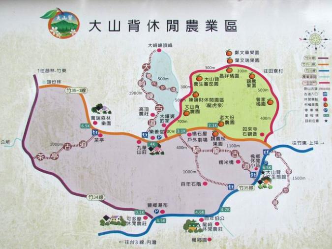大山背有人文歷史、開闊的視野及豐富的生態環境更有客家純樸的人情味。登上高頂農莊,俯視著油羅溪蜿蜒的身影,一路從尖石經內灣繞過大山背山與上坪溪會合成為 頭前溪往南寮出海而去,每年四五月油桐花飄滿地,螢火蟲翩翩起舞 ,這裡的台灣藍鵲與紅嘴黑鵯正熱鬧著,無論何時這裡都值得我們一起造訪百年古道、糯米橋、泥磚屋、桐花步道、崎龍古道.....