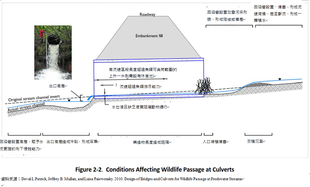 底質為砂質,涵洞出河口會造成斷層及落差,洄游魚類屆時無法上溯。都蘭溪水域生物90%以上屬於洄游性生物,若又有枯水期水量少等原因使水路造成斷流,中游、上游環境內洄游生物族群無法遞補,將造成該河段洄游生物滅絕,如鱸鰻將不復見,鰻苗上溯也將受到影響。
