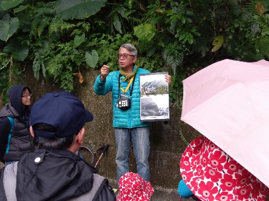 獅頭山共有9個登山口,這次從中興路上的登山口進去。起初,由總召水松大哥簡單介紹獅頭山的歷史淵源與地理形勢,之後帶領大家進行敬山儀式,祈求走讀順利並獲得美好的收穫。而沿途解說設有幾道關卡,分別由各位解說小組成員定點解說,向民眾介紹其特色植物與相關歷史文化。