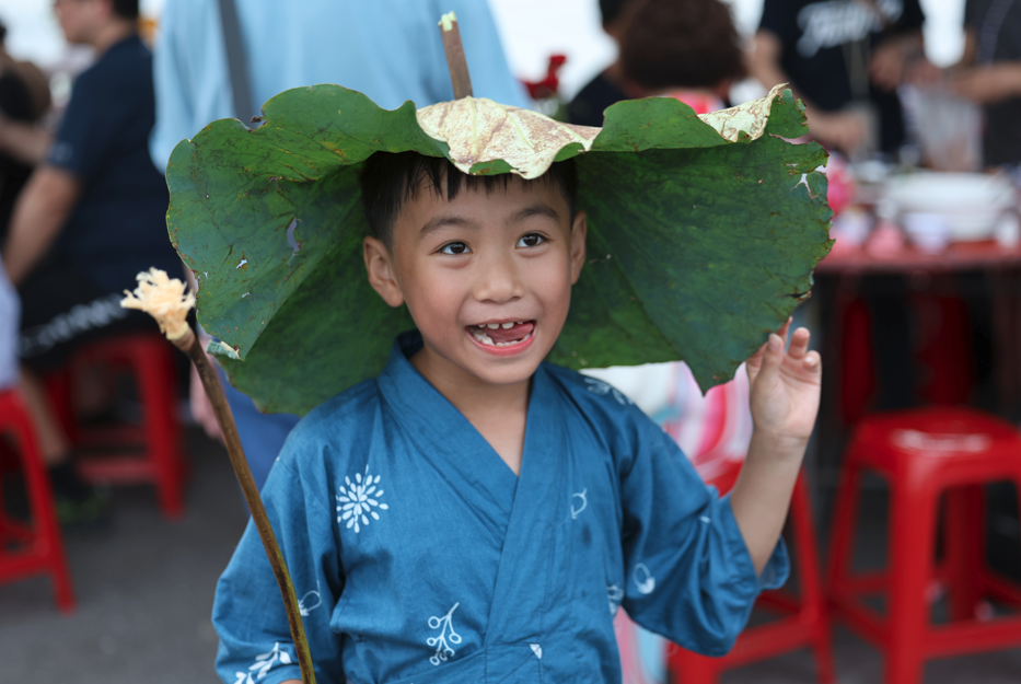 然而這記憶之路,並不容易走。今年的藝術季籌備之時,三個颱風先後生成、盤旋,路徑未明。每一場演出與行動,都要與天氣搏感情。布置場地、搭起展棚、準備「沉浸式吃桌劇場」,都在風雨之間反覆調整。藝術家撐著傘裝置作品,總舖師撩起袖子準備菜色,小孩在積水的田埂邊奔跑採蓮。那不是困境,而是土地回應我們的考驗。