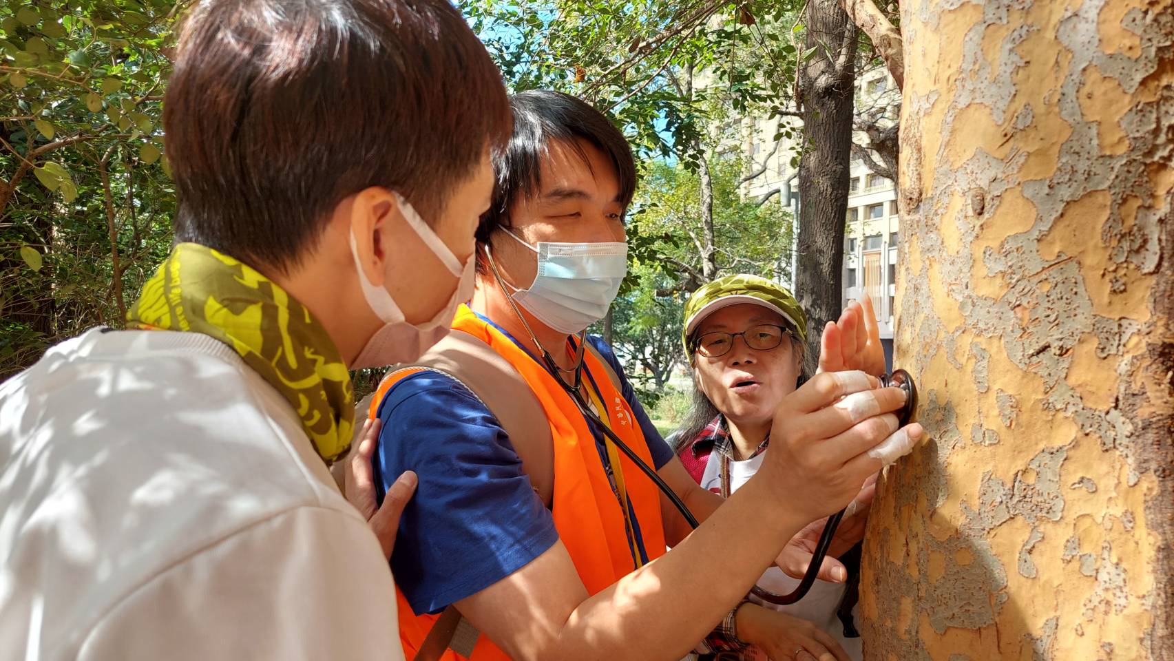 活動當天我和梅花鹿分別擔任觸覺及嗅覺關主,本來想規劃運用五感認識兩三種公園裡的樹種跟果實、還要加上配對遊戲,結果總召前輩老鷹說我想得太多太複雜了,事實證明,老鷹是對的!盲朋友會細緻地觸摸果實每一個突起、每一面帶來的不同觸感,或沿著葉脈往上觸摸、一點一點地在他們心中描繪著視覺無法容納的心像。