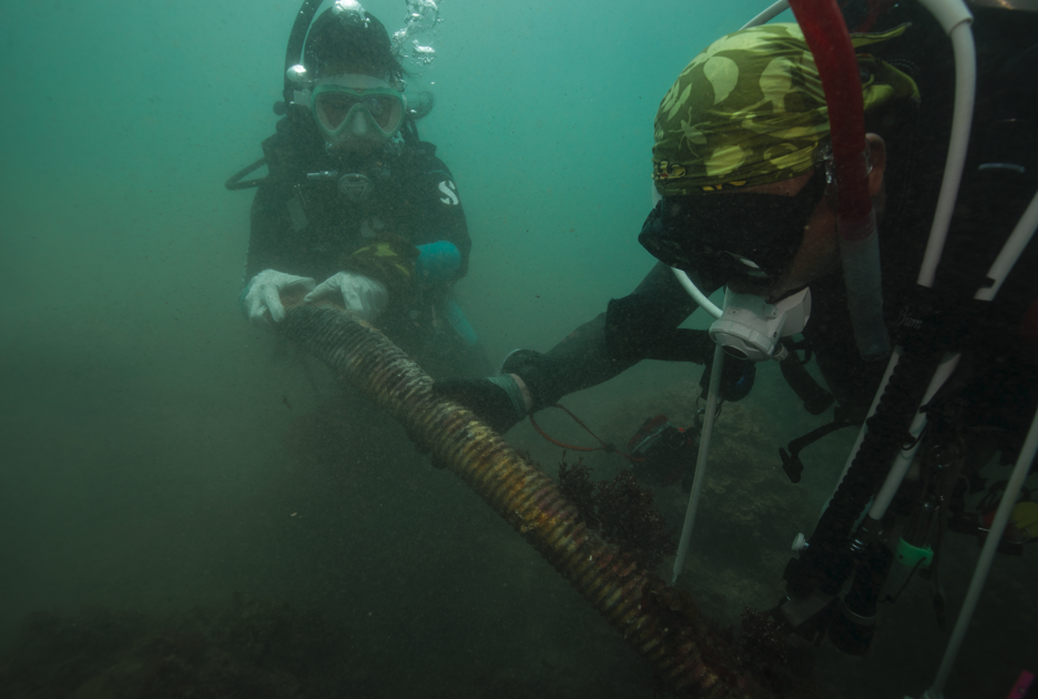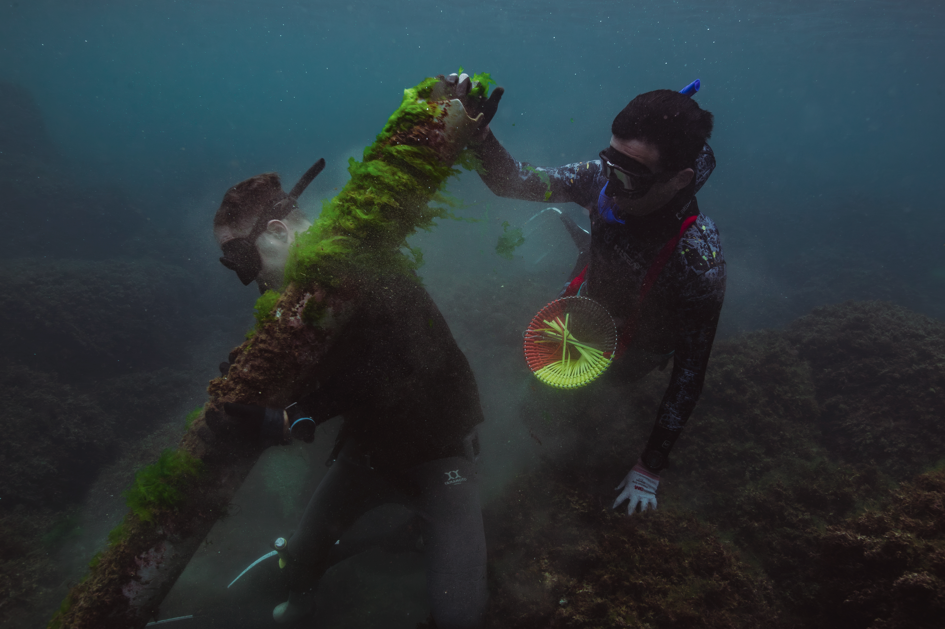潛水員在海底找到一根根的塑膠廢管,從底泥挖出、切割,合力向上運送,出水面再交由獨木舟和立槳接手運回海岸。整個過程耗費眾多人力和技術才能成功,不禁為團隊感到驕傲。這些長達可達好幾米的養殖業廢管已在海底沉睡多時,棄置只需幾分鐘時間,但這群愛海的傻瓜們卻願意竭盡力氣將它從海裡帶出,只為了保護我們愛的海。