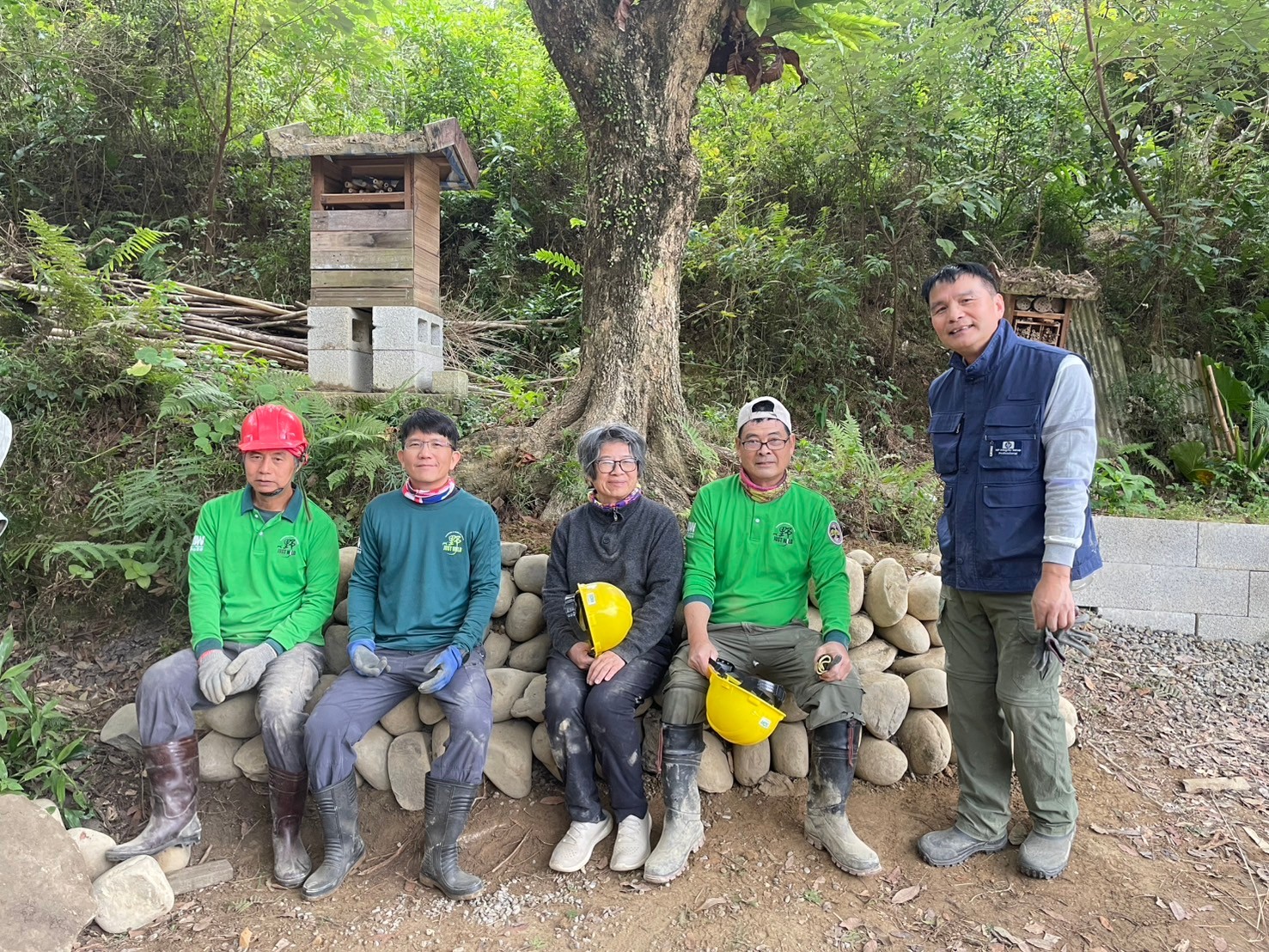 砌石護坡是一項極度耗體力的工法,雖然事前畫了圖,但棟哥額外加碼:駁坎要能「當椅子」!結果施工過程三進三出地調整位置,大家邊笑著抱怨,邊把工程完成。最終完成的護坡不是完美,但卻是一起努力的最好成果。