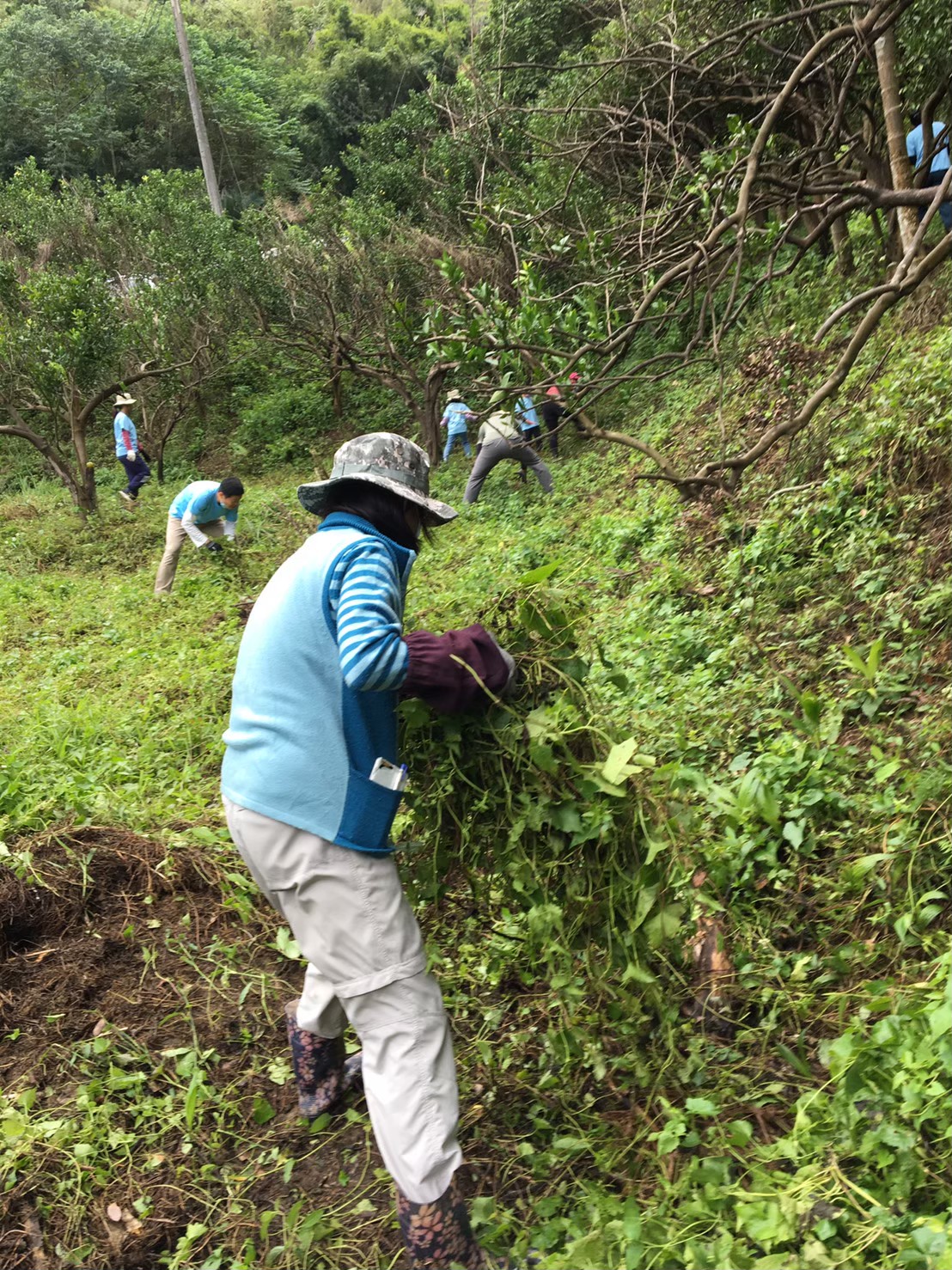 台灣擁有豐富的生態系,但外來種植物的入侵已成為嚴重威脅本土之生態。小花蔓澤蘭不僅遮蔽陽光,還與原生植物爭奪水分與養分,導致生態失衡。它的快速擴散能力,使許多原生物種面臨生存危機,甚至影響昆蟲與鳥類的食物來源,進一步破壞整個生態鏈。透過除蔓行動,不僅守護了柑橘園,更讓原生植物重新獲得生長空間,促進生態鏈的健康循環。其中,參與除蔓的夥伴回饋認為,這不僅是一場體力勞動,更是一段心靈療癒的旅程。親手移除外來種的過程,讓大家深刻感受到與自然重新連結的力量,並重新體認環境保護的價值與意義。