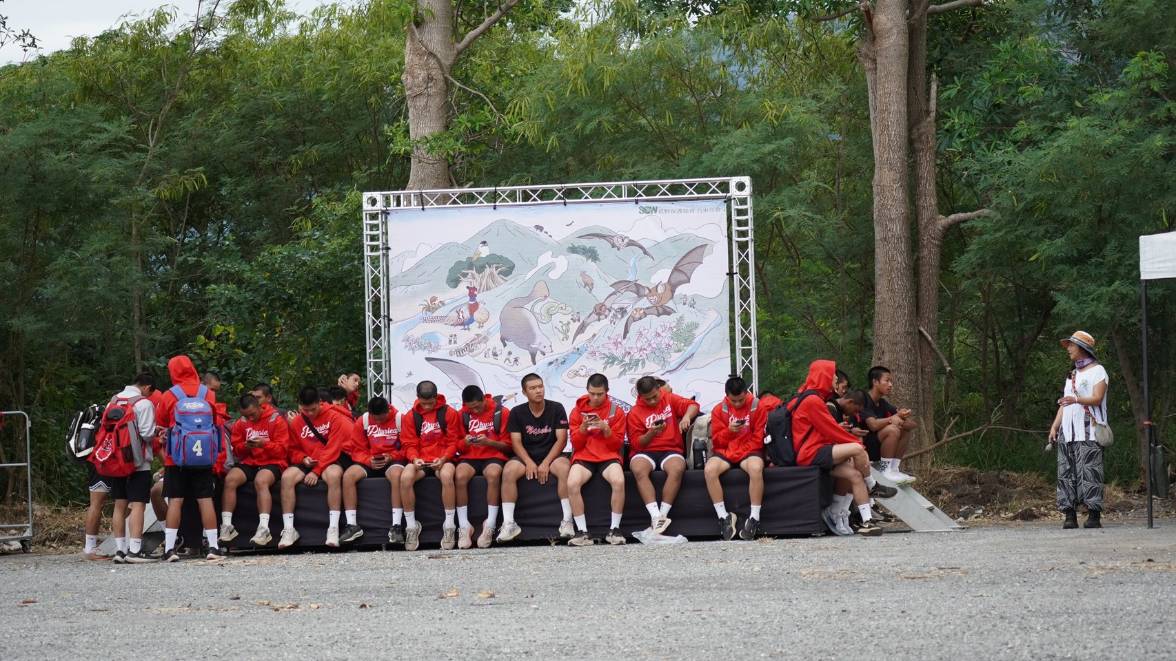 ▲當地學生在主視覺前等候開跑