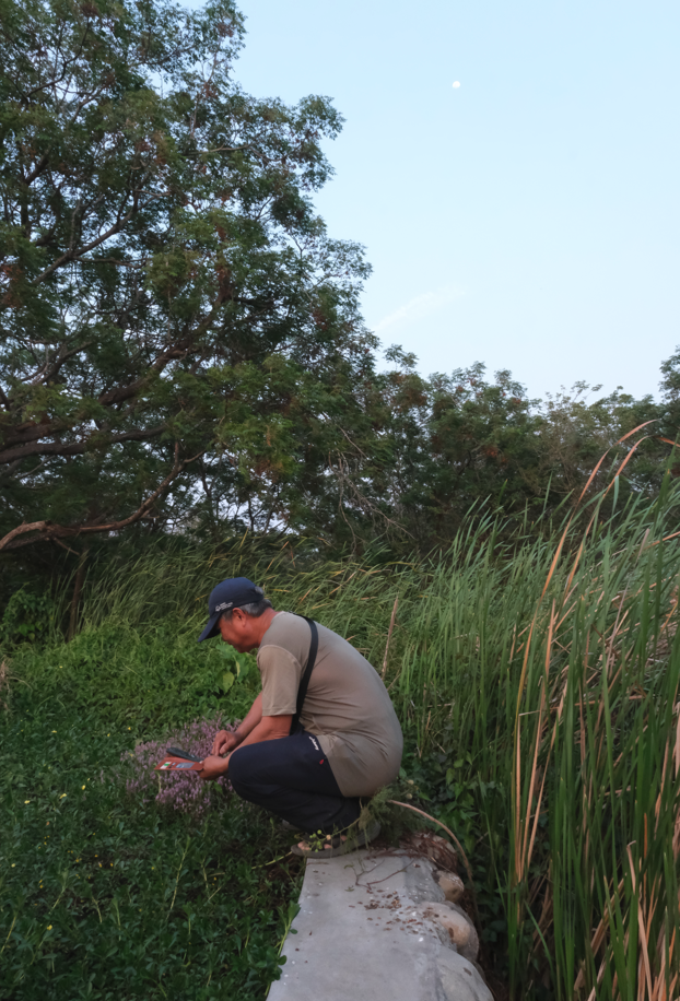 翻閱過去城市自然大挑戰的資料,特派員們其實相當好奇血藤的紀錄過程,在去年的城市自然大挑戰紀錄物種數拿下世界第一的他,總共記錄了1,573種。短短四天內,平均一天要記錄到300多個物種,絕非單純拉長在野外的時間就可以做到。而透過這次採訪我們了解到,原來荒野的iNaturalist達人,多數都對生態觀察長期投入,已具備專業知識,使用iNaturalist更讀心應手。血藤自小生長於南投山區 ,在成長過程便展現對自然的高度興趣。後來漸漸接收到許多生態保育的觀念,在加入荒野後,便開始以守護的眼光來看待自然物種。常常鑽研不同工具的血藤,在iNaturalist尚未中文化時已開始使用,然而當時對介面不熟悉,因此與雲林分會秘書通力合作,一起調查的過程,由血藤辨認植物,秘書拍照記錄上傳,這是雲林地區使用iNaturalist進行棲地調查的初期記憶。而後iNaturalist由林政道老師進行中文化後,更成了這位資深志工的最佳利器。