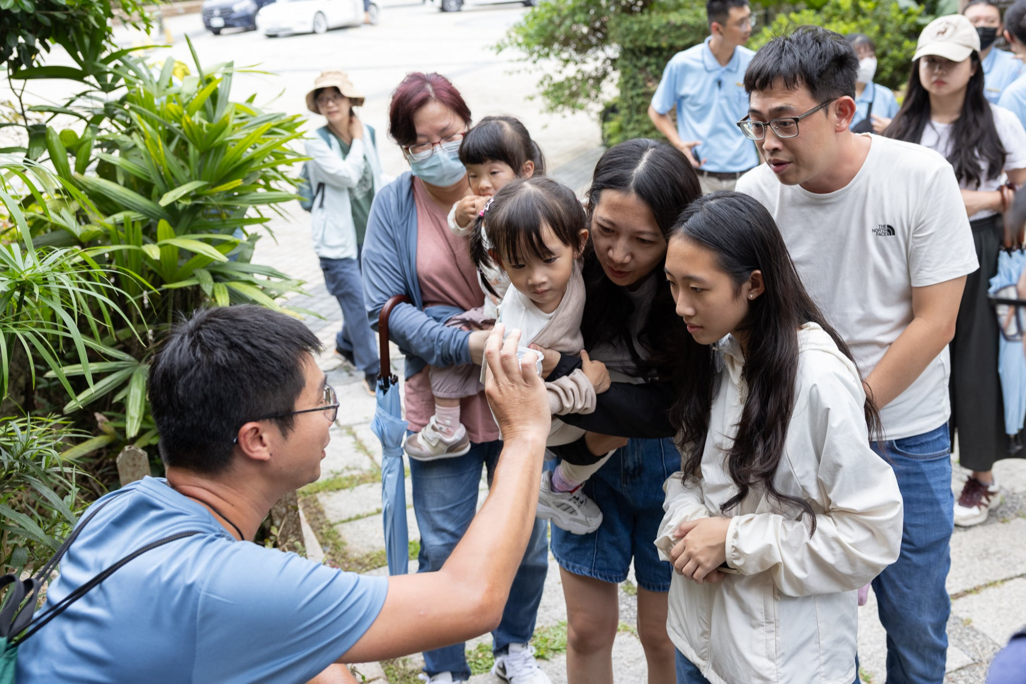 隨著解說員⼀路指點──「這裡有蜘蛛、⼤黃葉蚤、葉蟬、草蟬……快看看這裡還有什麼?」短短不到兩百公尺的路程,眾⼈卻走了將近⼀個⼩時。這段體驗讓⼤家深刻感受到,只要放慢腳步、靜下⼼來,與⾃然共振,那些原本不曾注意過、其實就⽣活在我們⾝邊的⼩⽣物,便會⼀⼀現⾝眼前,展現⼤⾃然最真實的⾯貌。