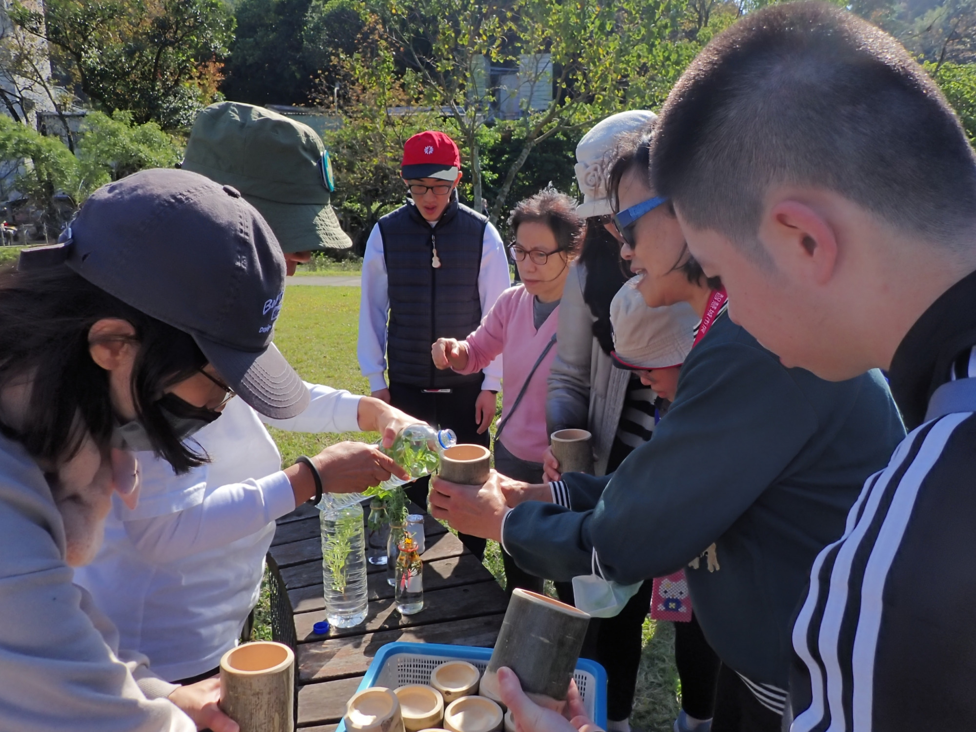 經過一番腦力與體力的激盪,老師貼心地端出了氣味清香的香草茶。令人感動的是,現場完全看不到一次性紙杯,取而代之的是質樸的竹筒杯。「荒野」對環境的溫柔與堅持,讓香草茶喝起來別有一番滋味。