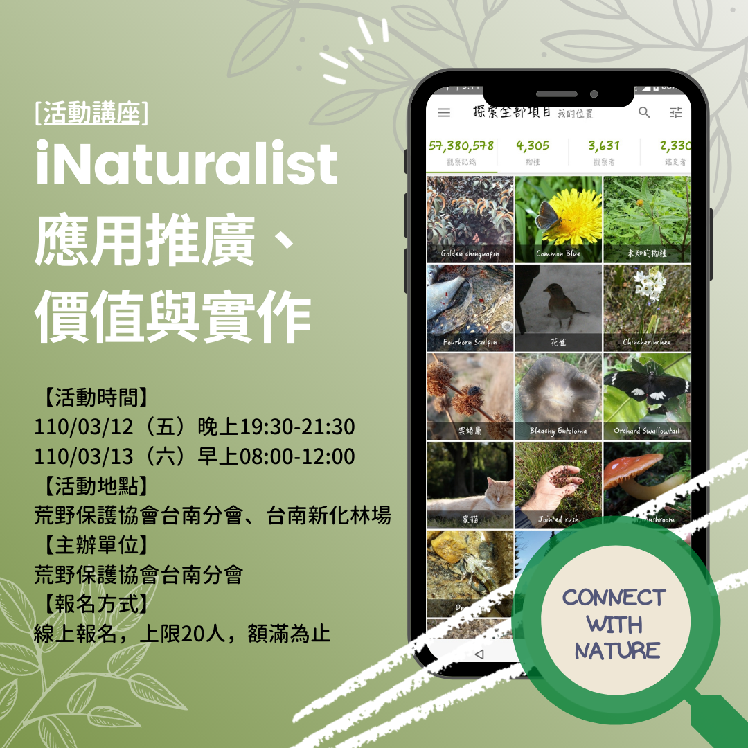 - 大家動起來,一起做調查: iNaturalist實際操作與運用,協助建構台灣最全面的棲地與物種的名錄