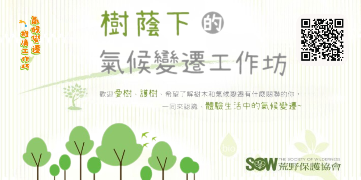 荒野保護協會台北分會氣候變遷推廣教育組長期關注氣候變遷及節能減碳相關議題,規劃一系列與日常生活息息相關的氣候變遷工作坊,共三套課程,從餐桌減碳、輕鬆節能、都市樹木作為永續旅程的起點,希望經由講解、操作、討論,與分享,引領大眾瞭解氣候變遷背後的科學知識與其影響,及可能的調適方法,增進公民社會的議題討論,進而鼓勵大眾實踐永續綠色生活💚