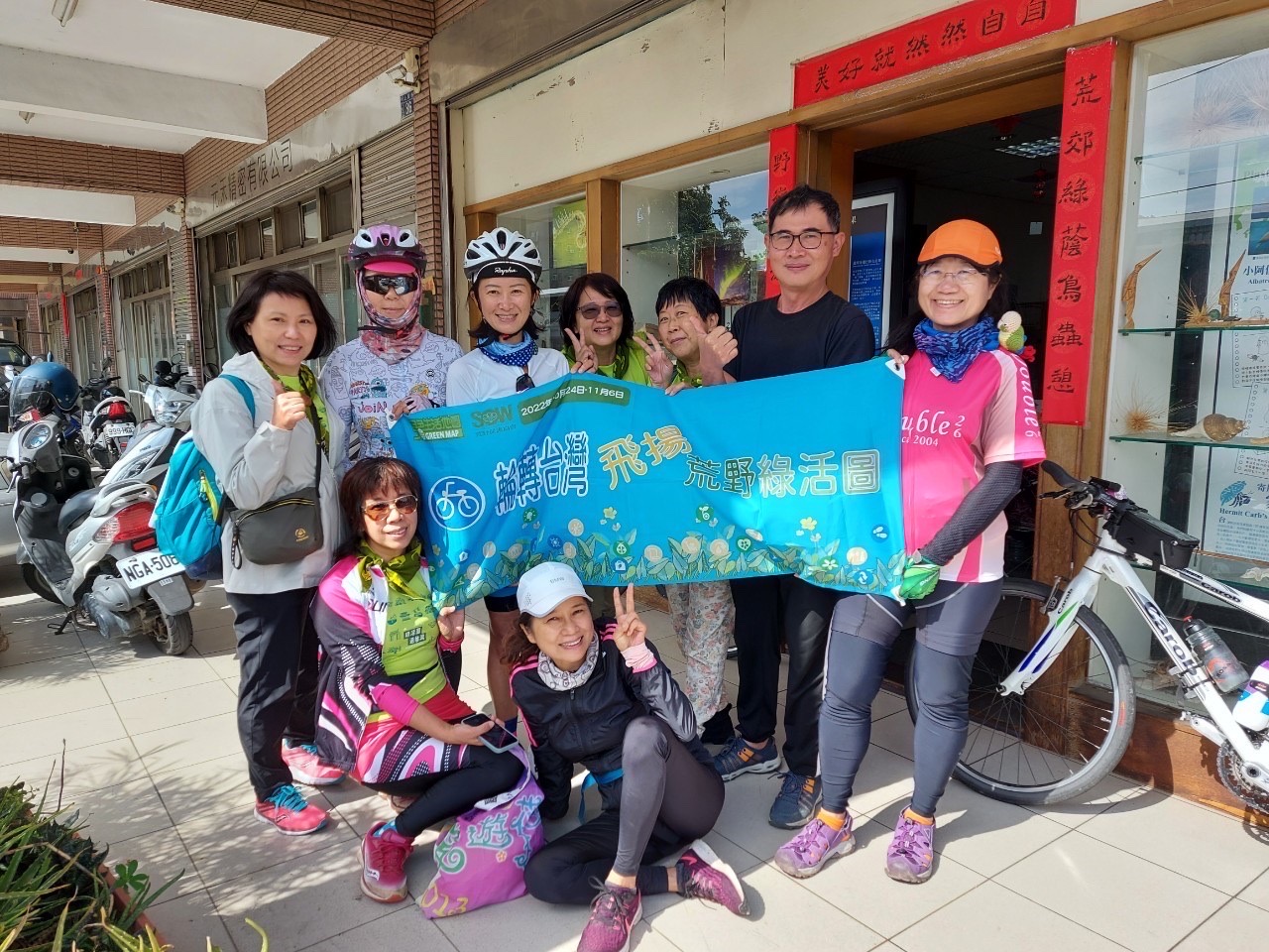 2022年10月24至11月6日一群志同道合的綠色生活地圖伙伴,用慢走、細看的走讀的方式,以單車、機車的方式環島,每個人帶著自己的環島夢,各選一個過程中的關注議題,約好一路畫圖,一路快閃展覽,並帶著9月剛出爐的「綠活圖遊台灣桌遊」與荒野台灣各分會分享,於是分會及民宿成了桌遊戰場與畫展展場…..