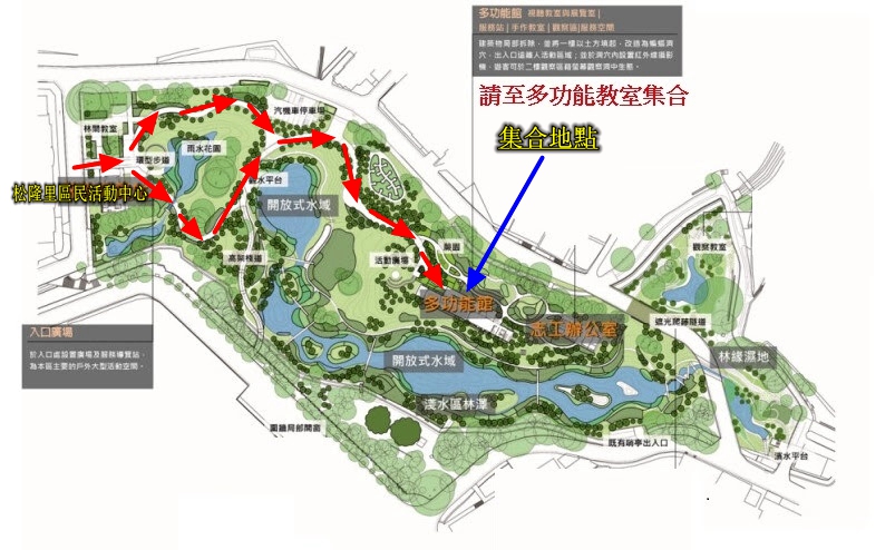 【集合地點】上午09:00 集合,於永春陂濕地公園多功能教室集合(google地圖)台北市信義區松山路657號