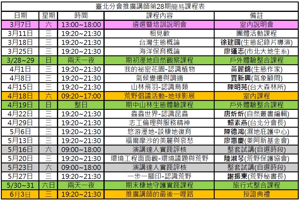 2.除旅行課程之外,課程地點均在荒野台北分會:台北市中正區詔安街204號B1