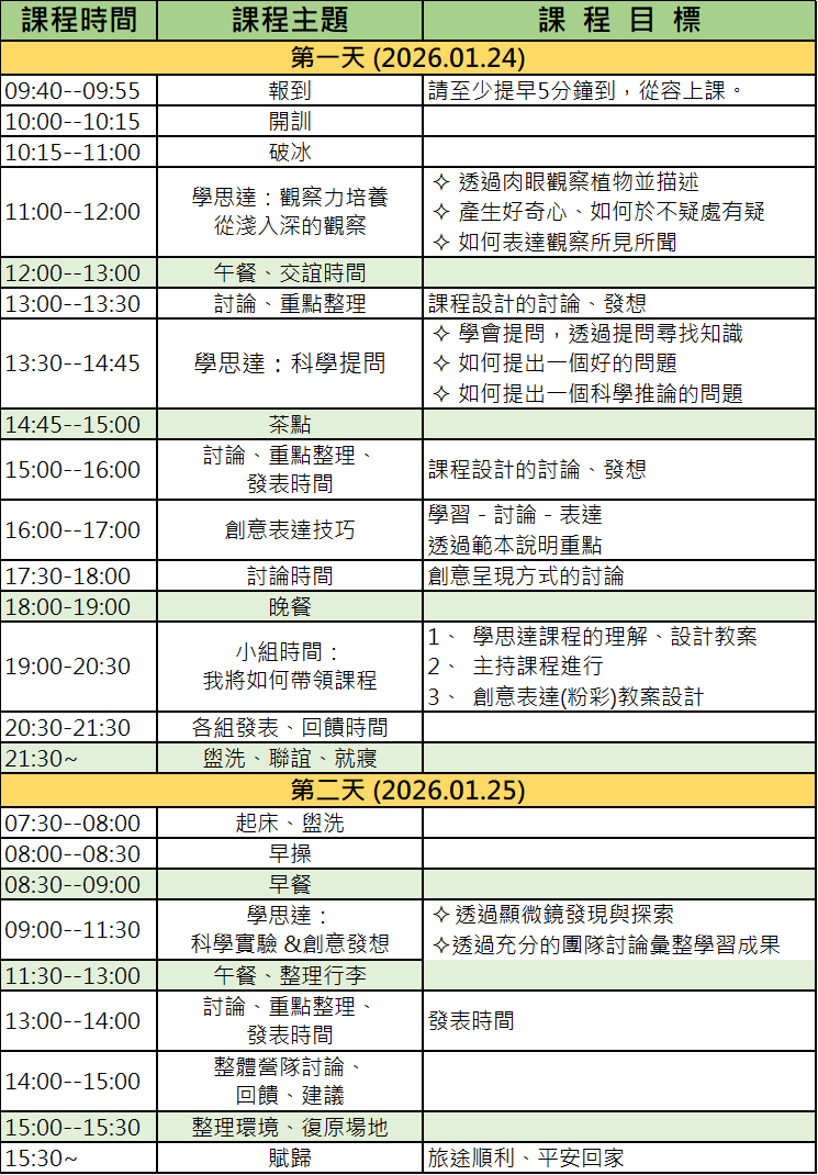 營隊日期: :2026/01/24(六)10:00~2026/01/25(日)16:00