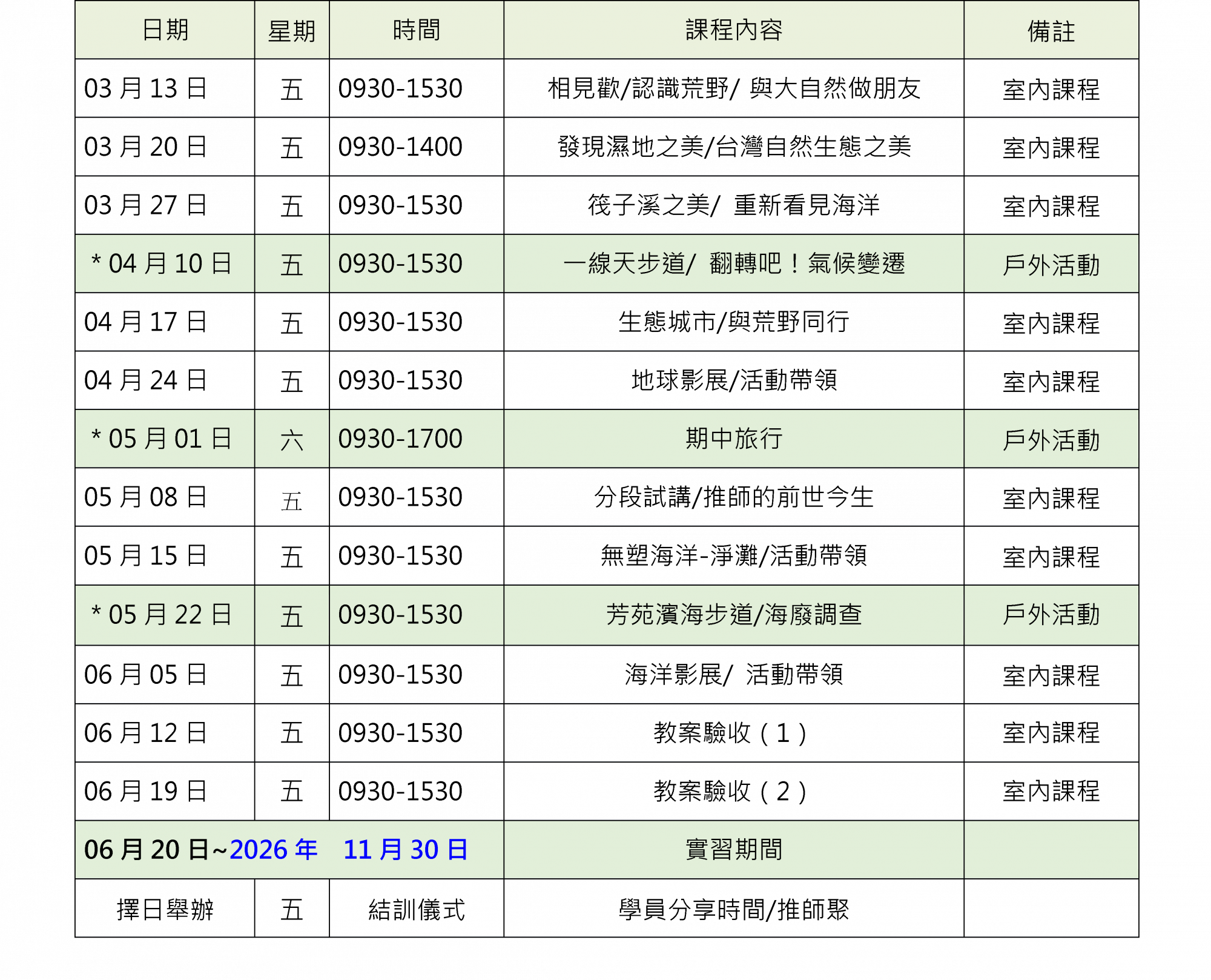 【課程日期】2026年03月13日至06月19日,每週五上午九點半至下午三點半及特定假日