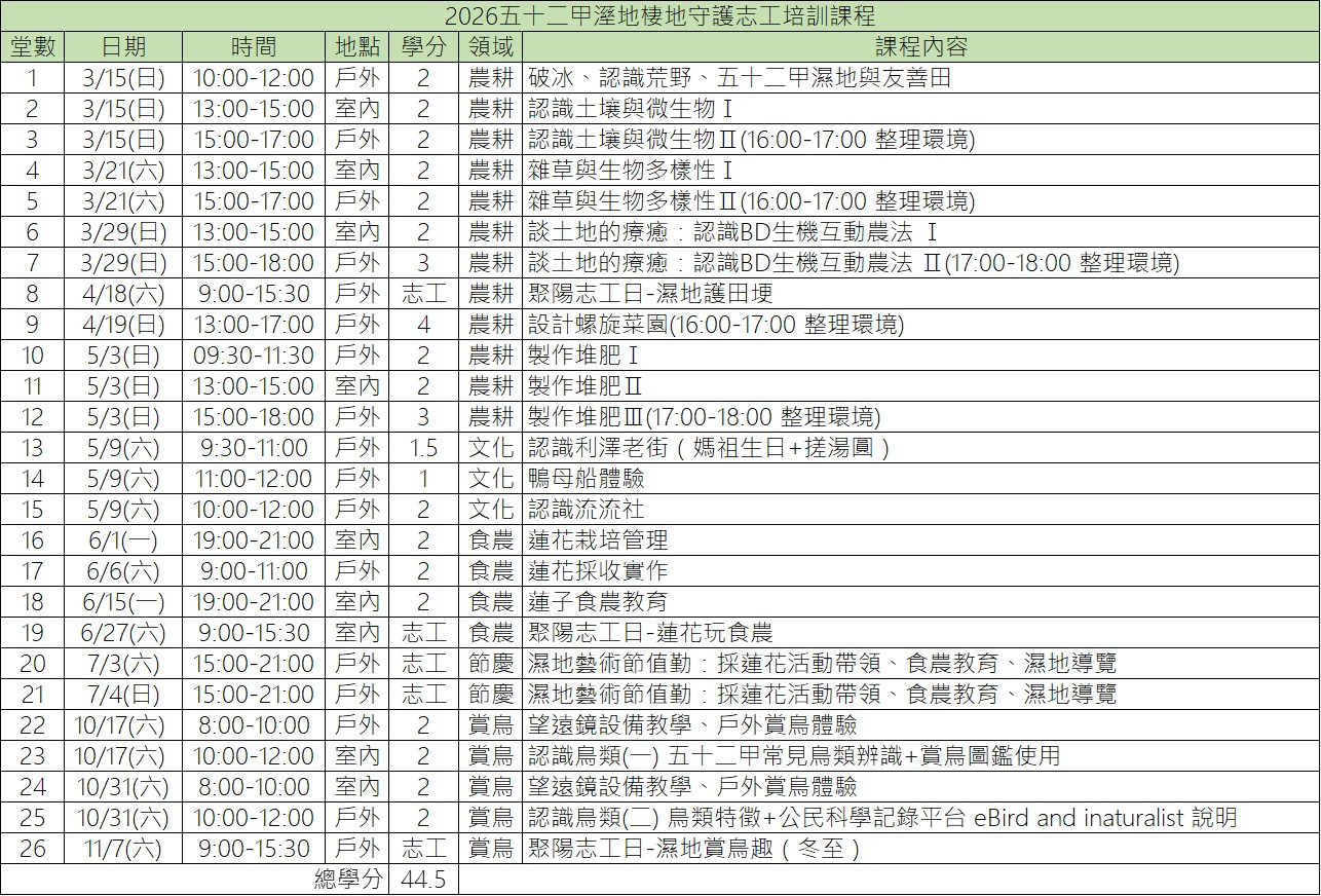 2026五十二甲濕地棲地守護志工培訓課程