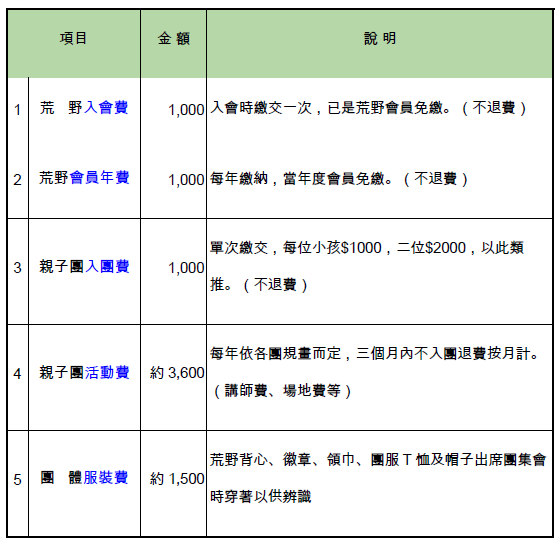 - 加入家庭需具備荒野有效會員資格,非會員家庭經遴選入團後須一併辦理入會。