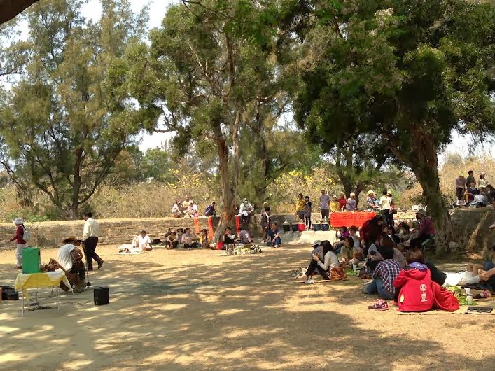 荒野保護協會台南分會解說定觀綠水組的觀察點-億載金城內,有一棵苦楝樹,詩人席慕蓉這樣描述著: “我最愛的一棵苦楝樹,長在島的南端。….你最好在三月底和四月初的季節里去,在那個時候,你會看見他開了一樹豐美而又柔和的花簇,粉紫的花簇開滿在灰綠的葉叢之上,…不過只是一棵苦楝而已,不過只是一棵在這個島上隨處都能見到的野生的樹,但是因為他自己的努力,因為他自覺的莊嚴與華美,因為那從根莖深處湧出的生長的力量,他終於把自己長成為一棵與眾不同的植物。誰說植物世界是靜默的世界,在這一棵苦楝樹開花的時候,整個億載金城里都聽得見春天歡呼的聲音!”三月紫花開,一起到億載聽花開的聲音。