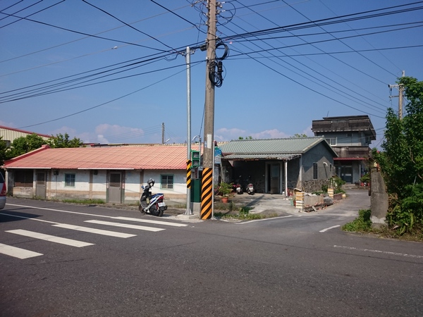 往沙灘路口的粉味老厝 ( 壯濱路二段406號 )。汽車可停在濱海公路兩側,不能開入沙灘。