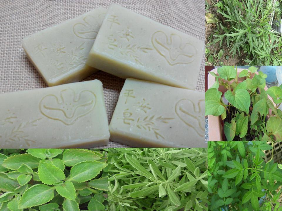 2.香草植物:艾草、魚腥草、左手香、香茅、絲瓜水等,植物皆來自台南分會的新市自然農場與分會門口保水透氣的樹箱,採自然農法種植,將依植物實際生長的狀況而採用哪一款香草入皂。