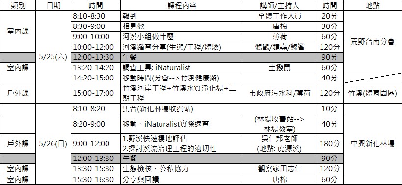 - 本課程含講師費、保險費、場地費及行政費用,不含戶外課交通及第二天午餐費用。