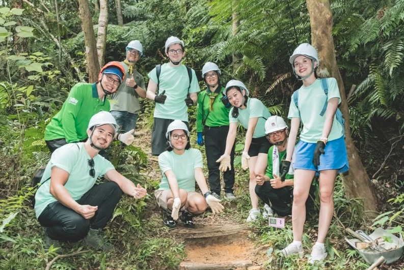 ▲志工們在大崙尾山步道以自然素材修復步道,為未來的保育工作奠定基礎。 圖/Porsche 提供