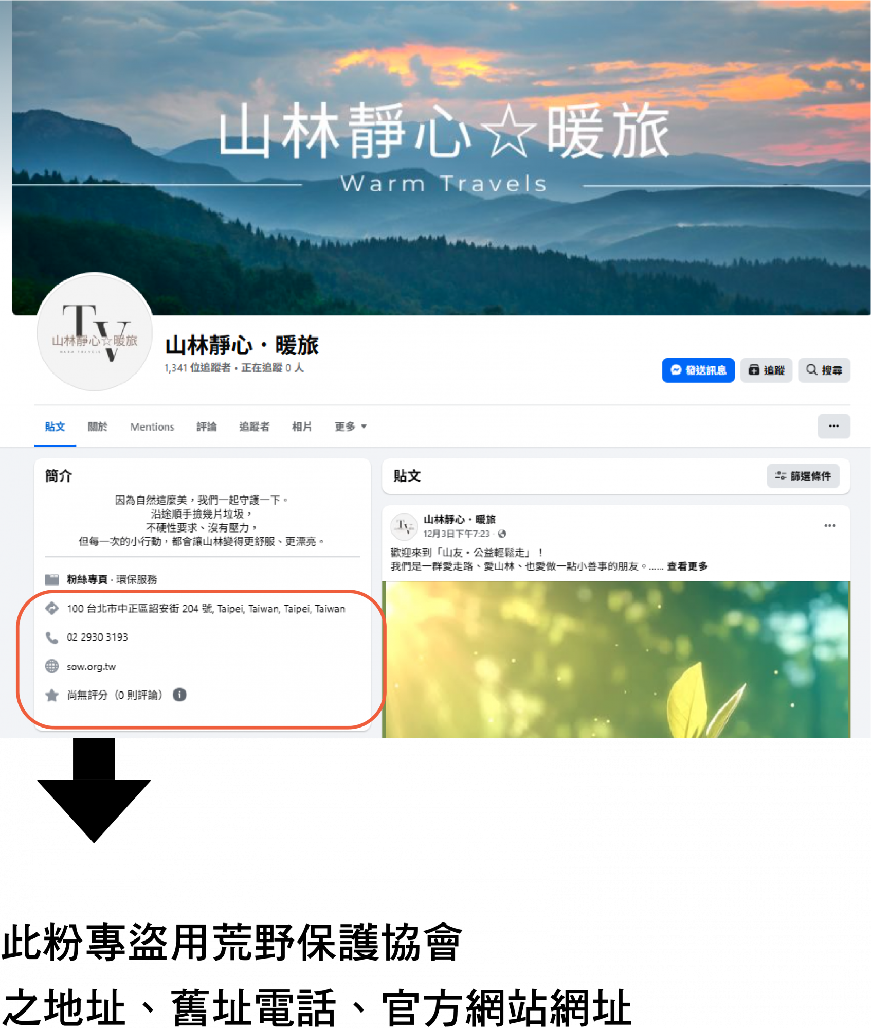 ❌該粉專不屬於荒野管理、也未曾辦理其發布、投廣的活動!!