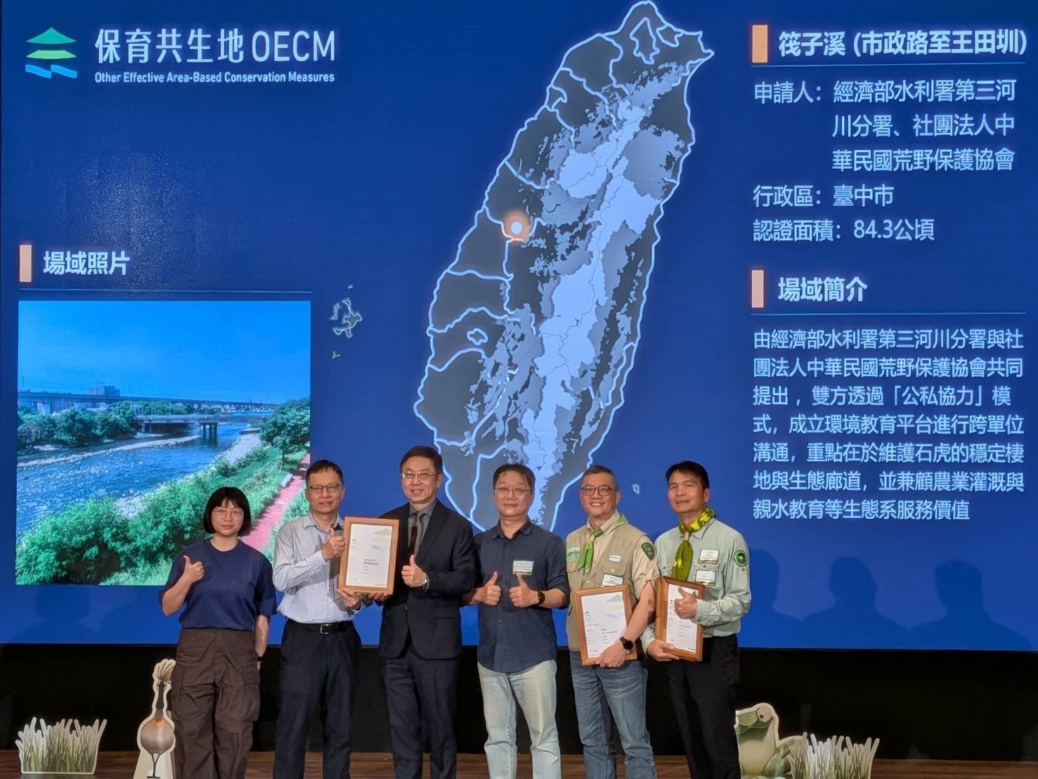 為呼應《生物多樣性公約昆明—蒙特婁框架》所提出「2030年全球30%陸域與海域有效保育」目標,農業部林業及自然保育署推動「保育共生地認證方案」,作為台灣版OECMs(Other Effective Area-Based Conservation Measures)。該制度鼓勵凡具備至少一項七大生物多樣性價值之場域,不論土地權屬或使用型態,均可申請參與認證,共同投入生物多樣性保育行動。