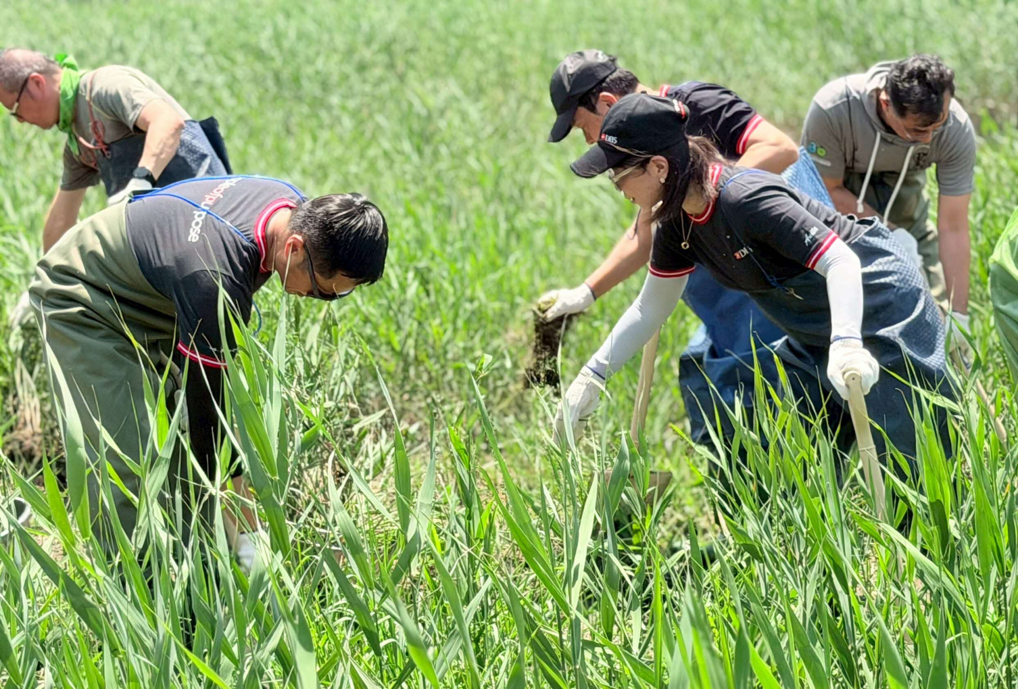 最後,為了以實際行動傳遞這項合作的永續內涵和精神,與會來賓和資深荒野志工們一起穿上涉水衣、捲袖下灘地,進行棲地維護工作。頭頂烈日、揮汗如雨的當下,更能感受長年守護在地環境的志工們,每一位都是不畏辛勞、無私付出,讓人敬佩。荒野保護協會榮譽理事長李偉文有感而發:「致力恢復土地原有樣貌,一直是荒野志工的堅持。夥伴們持續深耕環境教育,隨著國內對永續議題的高度關注,過去埋下的種子如今已遍地綻放。就像我們腳下的土地,不起眼的野花匯聚成盎然生機的瑰麗花毯。相信有更多人與企業的支持和參與,能讓永續落地生根,為未來帶來希望與生機。」